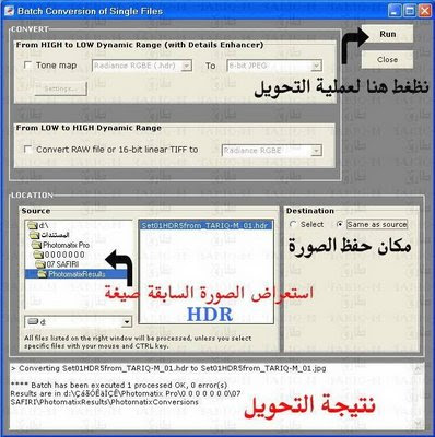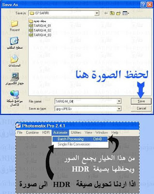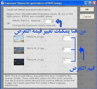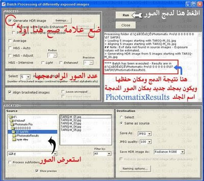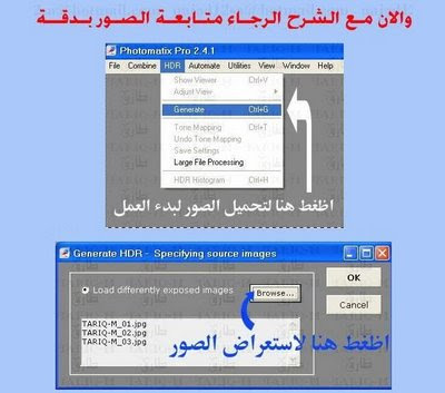 ثم نفتح برنامج Photomatix Pro ونقوم بالخطوات المبينة في الصورة :