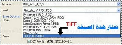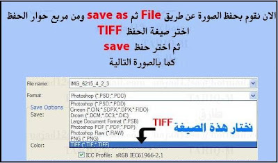 وبعد التحويل نختر File ونختر منها save as ونختار صيغة tiff