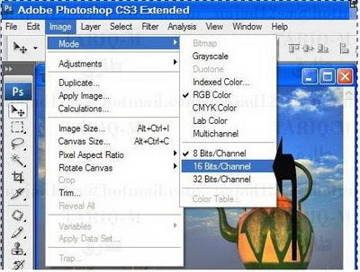 نستخدم الفوتوشوب أولاً لنحول الصورة من دقة 32bit إلى 16bit اختر من قائمة Image اخر Mode